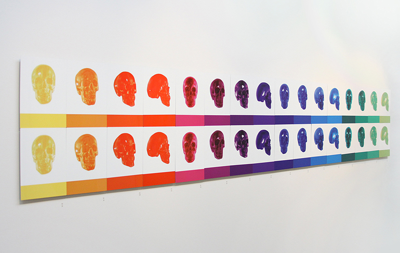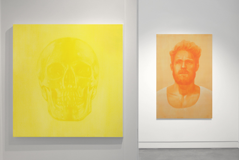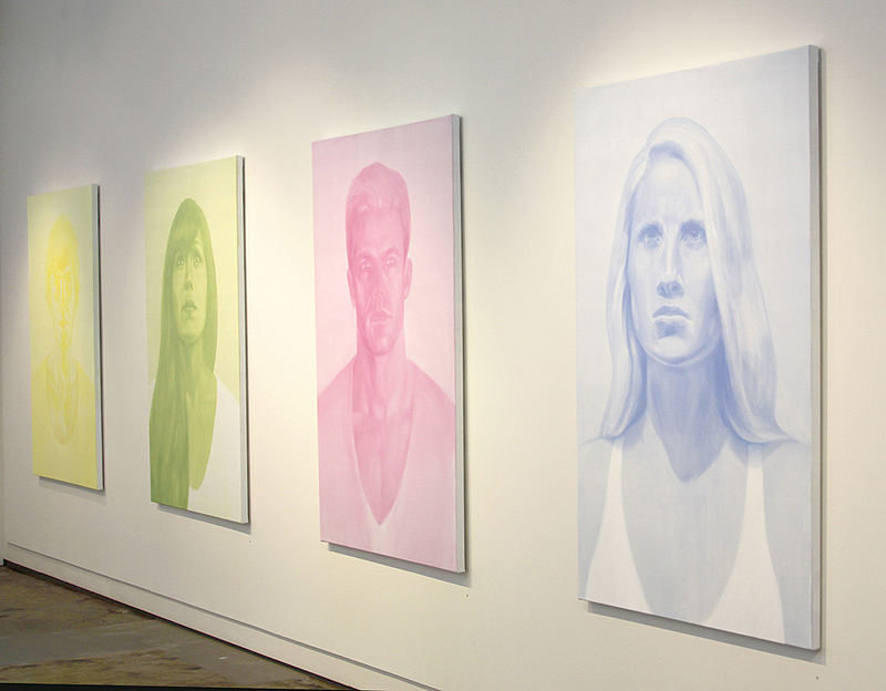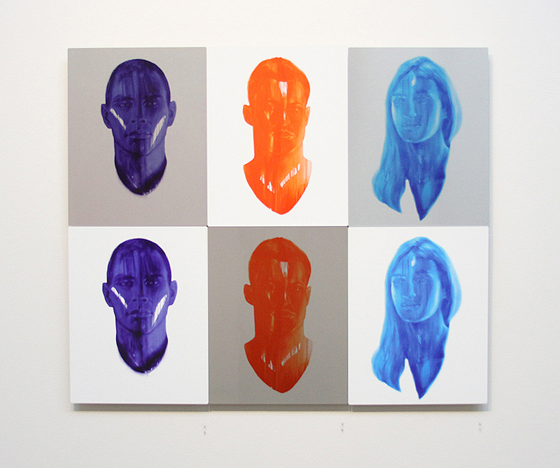 Through the use of high key, luminous colour and glossy metallics he exploits the language of fashion and advertising in order to subvert it. His painterly hand references his desire for a return of humanity and spirit to a consumerist world.